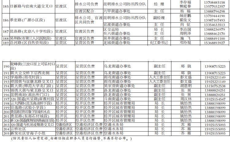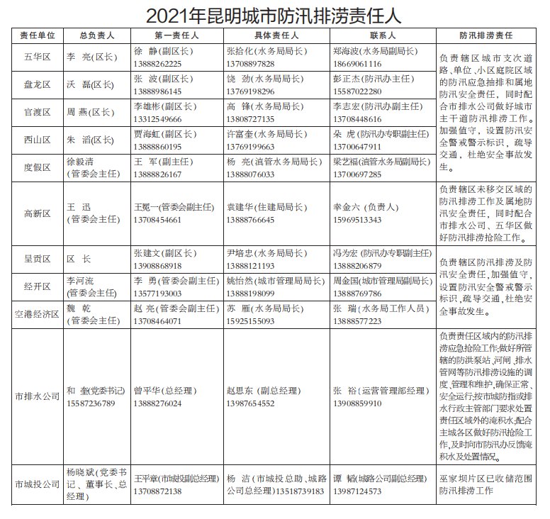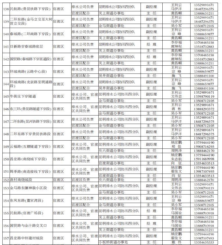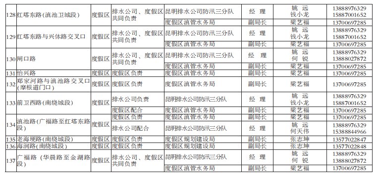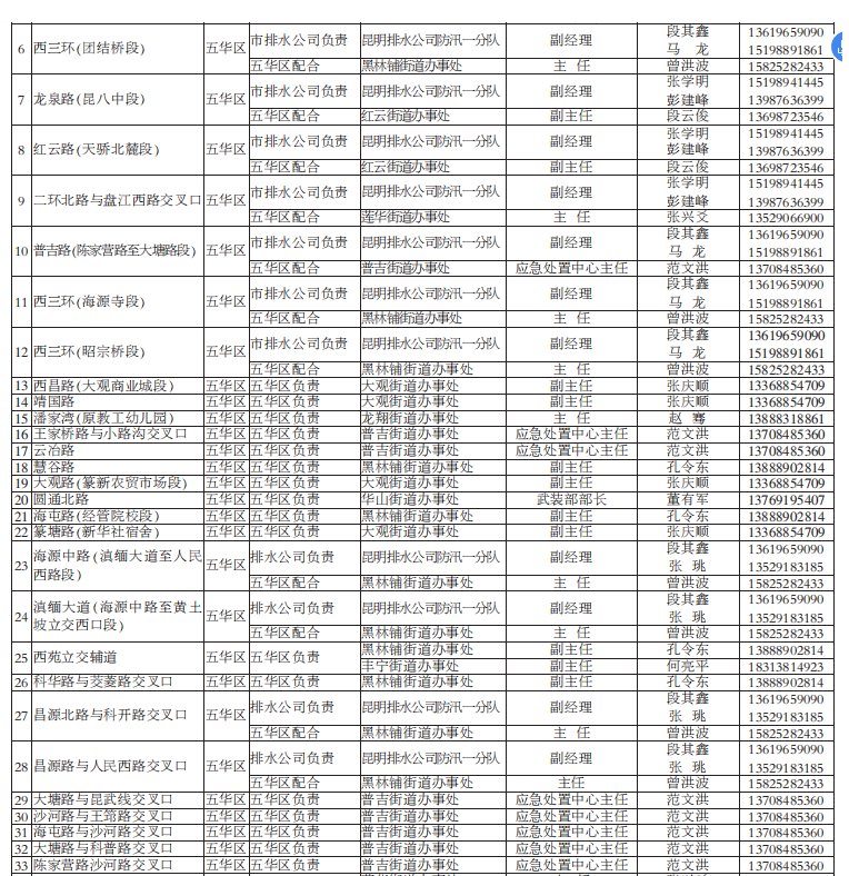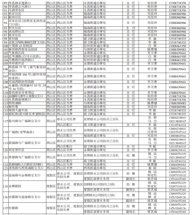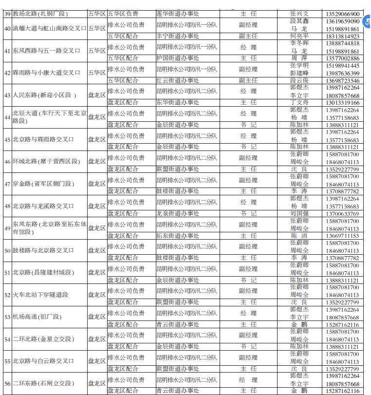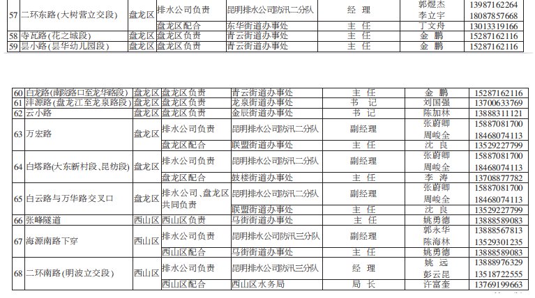 昆明市有多個淹水點(附負責(zé)人電話/名單)