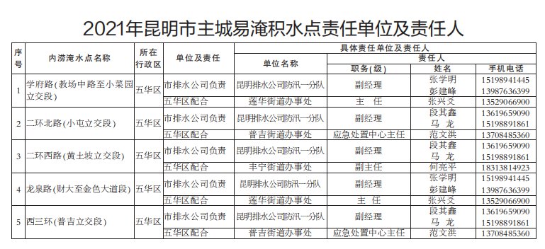 2021年昆明市防汛責(zé)任人公布/積水路段