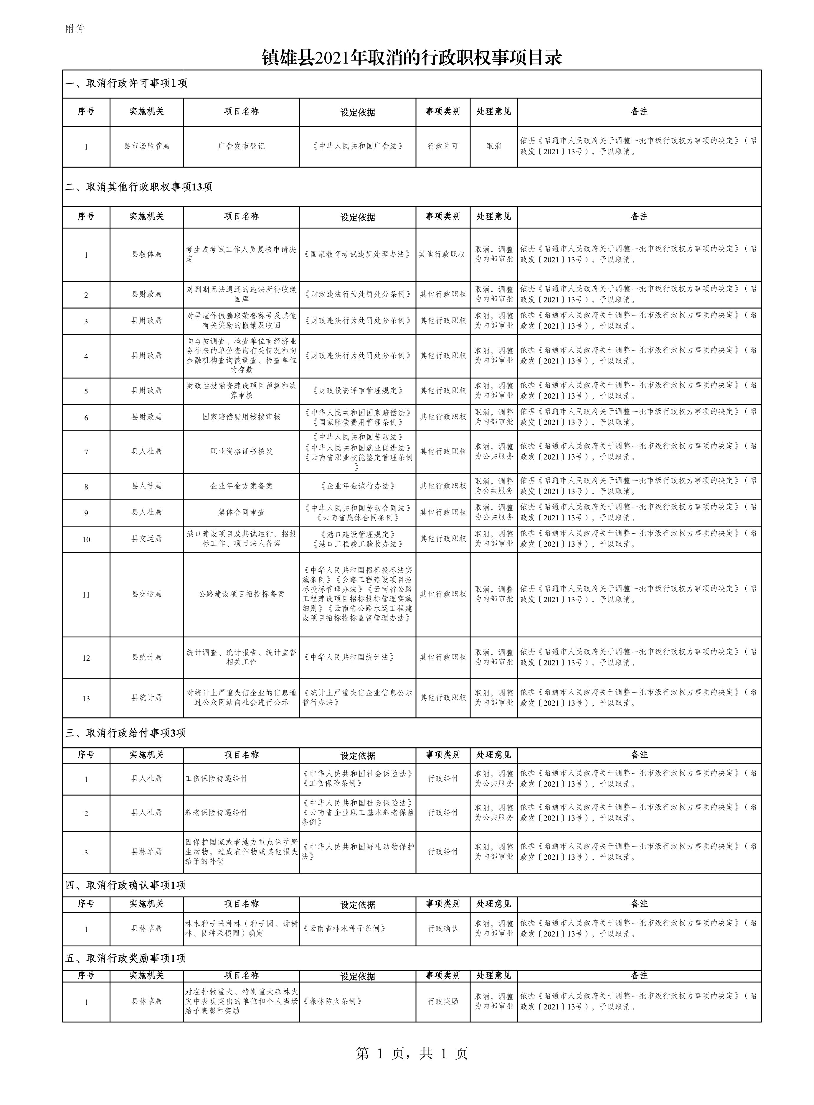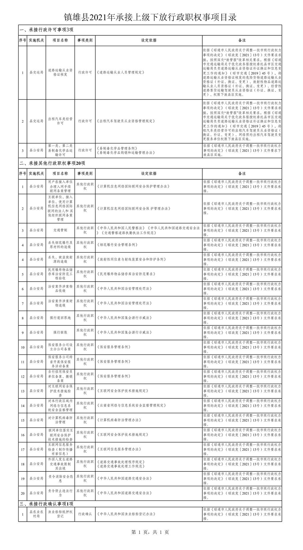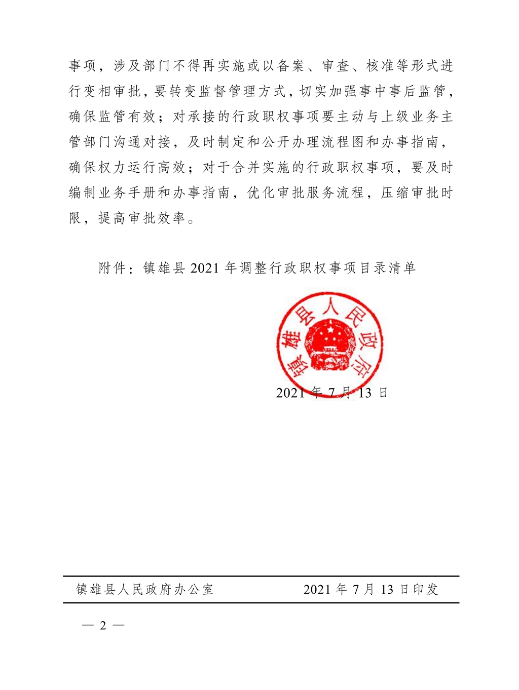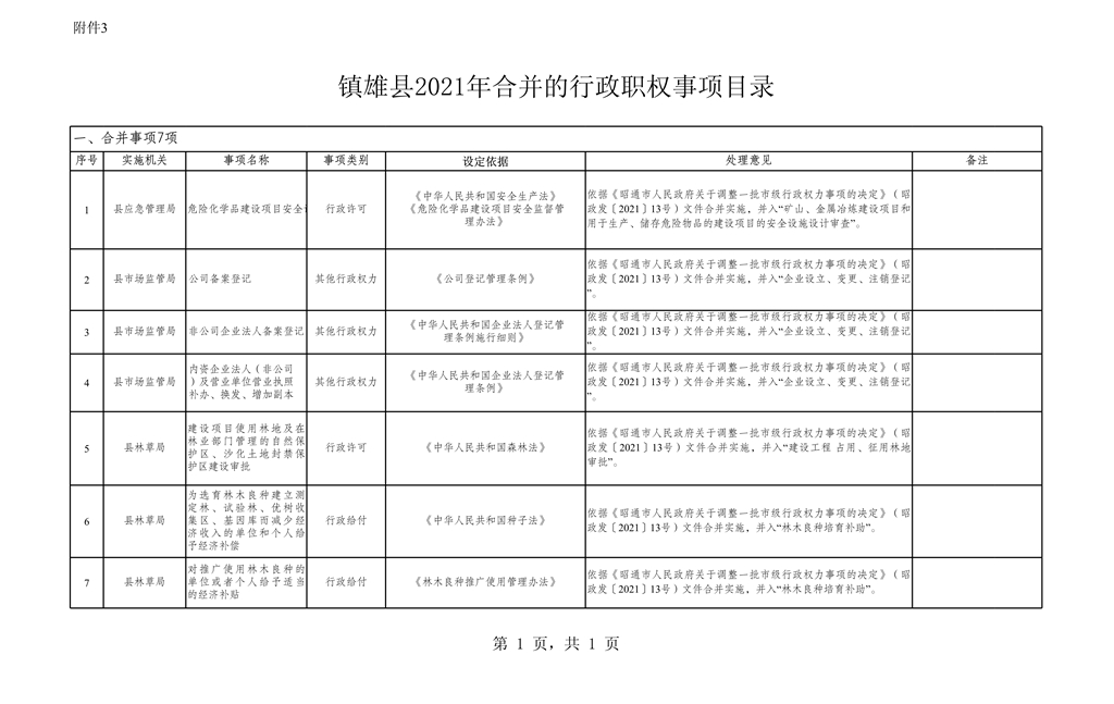 鎮(zhèn)雄縣人民政府關(guān)于調(diào)整一批縣級行政權(quán)力事項(xiàng)的決定