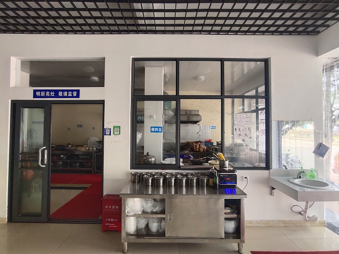 2.在就餐區(qū)醒目位置公示證照,就餐場所布局合理、干凈整潔,規(guī)范設置洗手設施,采取“透明廚房”式明廚亮灶,各類標識明顯。
