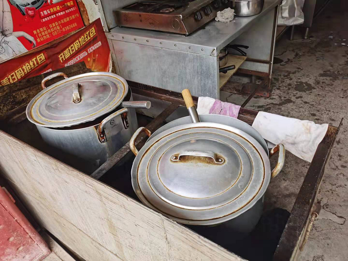 2.清洗區(qū)域臟、亂、差,有青苔;沒有設置清洗池,用過的餐具沒有及時清洗,亂擺亂放;泔水桶、垃圾桶、煤灶隨意擺放。