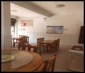 2、就餐區(qū)桌面、桌椅、墻面、地面清潔,門窗潔凈明亮,就餐場(chǎng)所整潔。