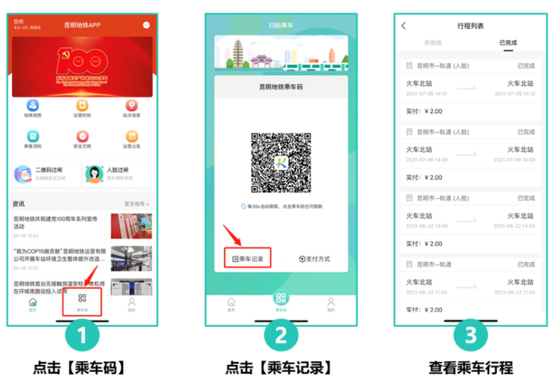 昆明地鐵刷臉如何查詢(xún)乘車(chē)行程