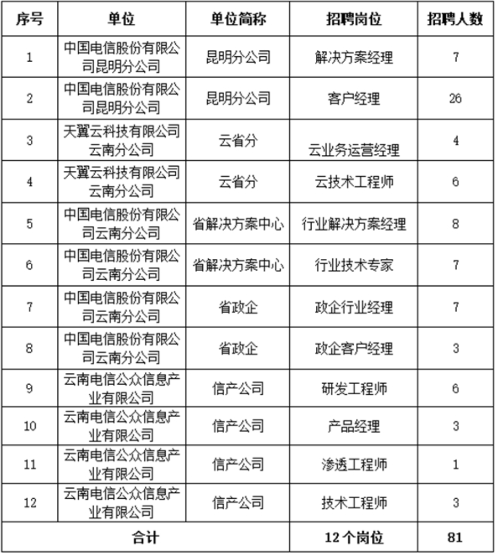 中國電信股份有限公司云南分公司2022年度行業(yè)專家及技術(shù)專家社會招聘公告