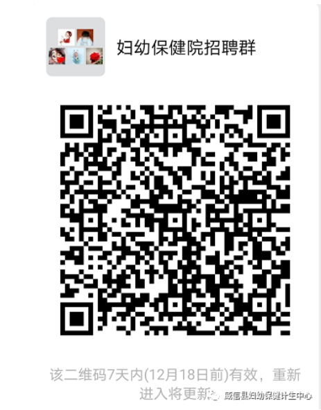 (三)請(qǐng)各位報(bào)考人員掃碼加入“婦幼保健院招聘群”下載招聘報(bào)名表: