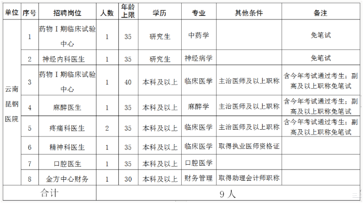 安寧市醫(yī)共體2020年工作人員(非事業(yè)編制) 招聘啟事