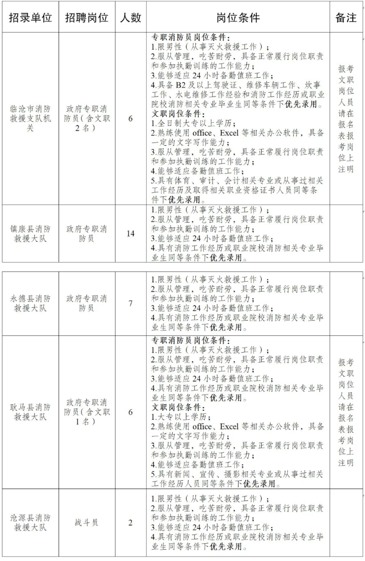 因工作需要,臨滄市消防救援支隊(duì)面向社會招聘政府專職消防員,現(xiàn)將招聘信息公告如下: