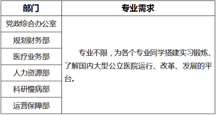 (一)實(shí)習(xí)部門和專業(yè)需求(每人可申報(bào)2個(gè)部門)