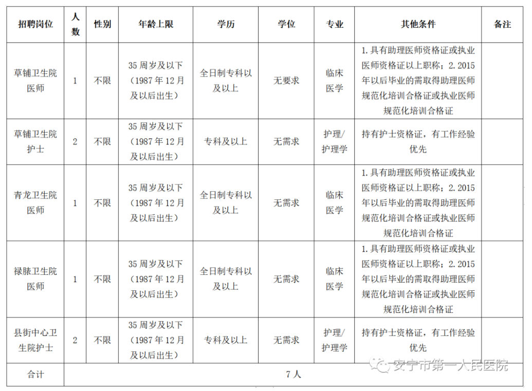 現(xiàn)醫(yī)共體下安寧市草鋪衛(wèi)生院(草鋪衛(wèi)生院衛(wèi)生院建筑面積1632平方米,距離安寧市中心6.8公里。開(kāi)設(shè)診療科目包含預(yù)防保健科、全科醫(yī)療科、內(nèi)科、外科、婦產(chǎn)科、兒科、醫(yī)學(xué)檢驗(yàn)科、醫(yī)學(xué)影像科、中醫(yī)科、中西醫(yī)結(jié)合科,編制床位20張,衛(wèi)生院擁有一支較高素質(zhì)的業(yè)務(wù)隊(duì)伍,以“精湛的技術(shù),一流的服務(wù)”,贏得了當(dāng)?shù)匕傩占吧鐣?huì)各界的一致好評(píng),下轄草鋪、麒麟、青龍哨、柳樹(shù)、邵九、王家灘六個(gè)村衛(wèi)生室)、安寧市青龍衛(wèi)生院(青龍衛(wèi)生院位于安寧市青龍街道龍翔路,距離市區(qū)25公里,占地5畝,建筑面積1800平方米。開(kāi)設(shè)診療科目包括內(nèi)科、兒科、外科、婦產(chǎn)科、中醫(yī)科、醫(yī)學(xué)影像科、醫(yī)學(xué)檢驗(yàn)科、預(yù)防保健科,編制床位30張)、安寧市祿脿衛(wèi)生院(祿脿衛(wèi)生院位于安寧市祿脿街道新驛路,醫(yī)院設(shè)有綜合門(mén)診部、綜合住院部、中醫(yī)科、心腦血管救治站及慢性病管理中心,現(xiàn)有編制床位40張,實(shí)際開(kāi)放60張,下設(shè)7個(gè)村衛(wèi)生室)和安寧市縣街中心衛(wèi)生院(縣街中心衛(wèi)生院位于安寧市縣街街道梨河路32號(hào),提供預(yù)防、康復(fù)、保健、健康教育、基本醫(yī)療、中醫(yī)、計(jì)劃生育技術(shù)指導(dǎo)等綜合服務(wù),現(xiàn)有編制床位42張,下設(shè)10個(gè)村衛(wèi)生室)因工作需要,面向社會(huì)招聘非事業(yè)編工作人員。