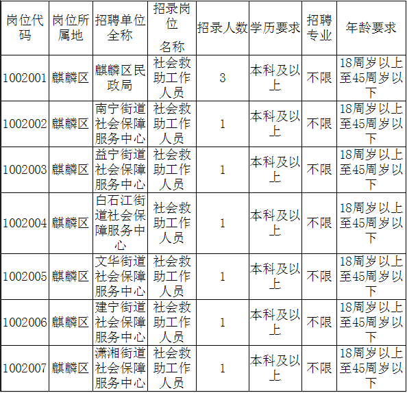 3.社會救助工作人員是“統(tǒng)一招聘、統(tǒng)一管理,麒麟區(qū)民政局使用”的政府購買服務人員,必須服從麒麟區(qū)民政局的統(tǒng)一管理和使用。