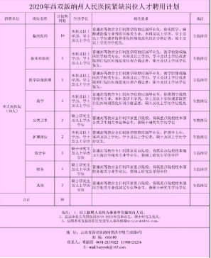 西雙版納州人民醫(yī)院2020年緊缺崗位人才引進招聘