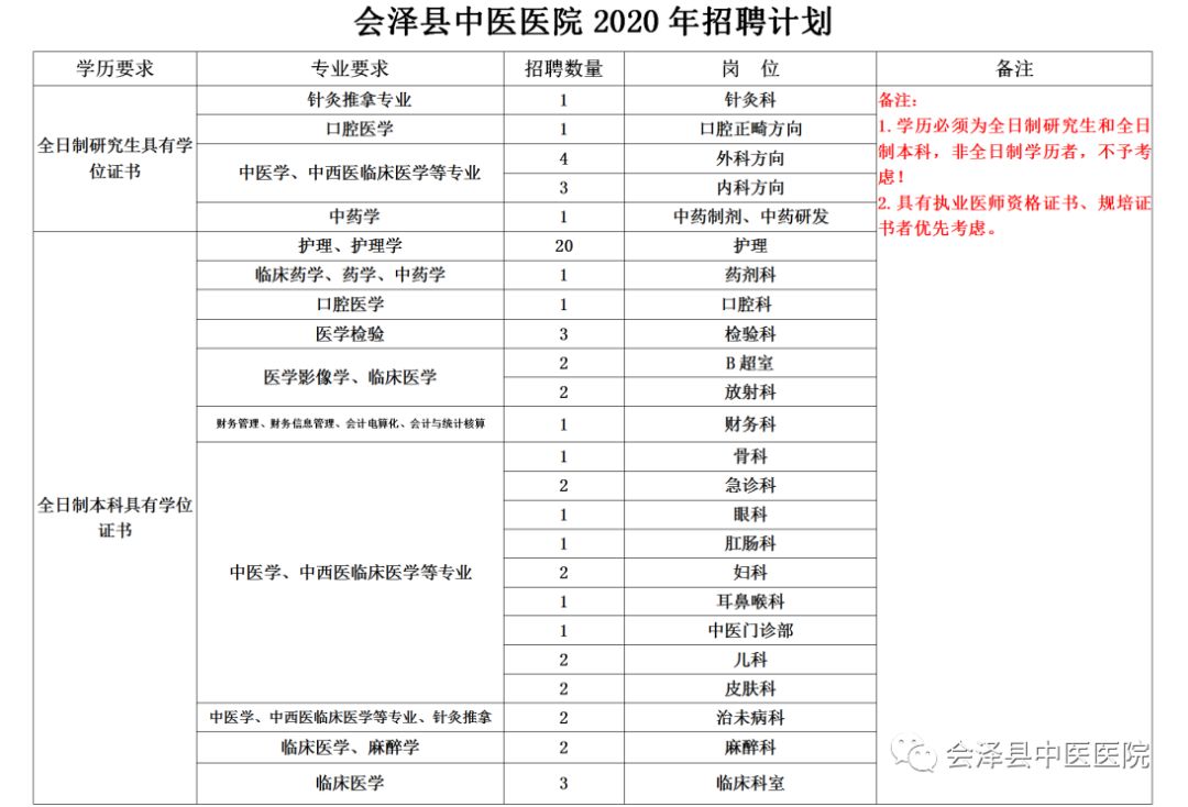 會(huì)澤縣中醫(yī)醫(yī)院2020年招聘公告
