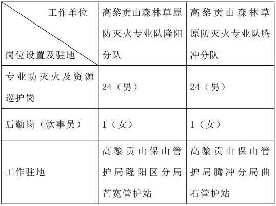 現(xiàn)因工作需要,云南騰森人力資源服務(wù)有限責(zé)任公司面向社會(huì)公開招聘高黎貢山森林草原專業(yè)防滅火隊(duì)員,派遣到高黎貢山自然保護(hù)區(qū)保山管護(hù)局森林草原防滅火專業(yè)隊(duì)工作,現(xiàn)將招聘事宜公告如下:
